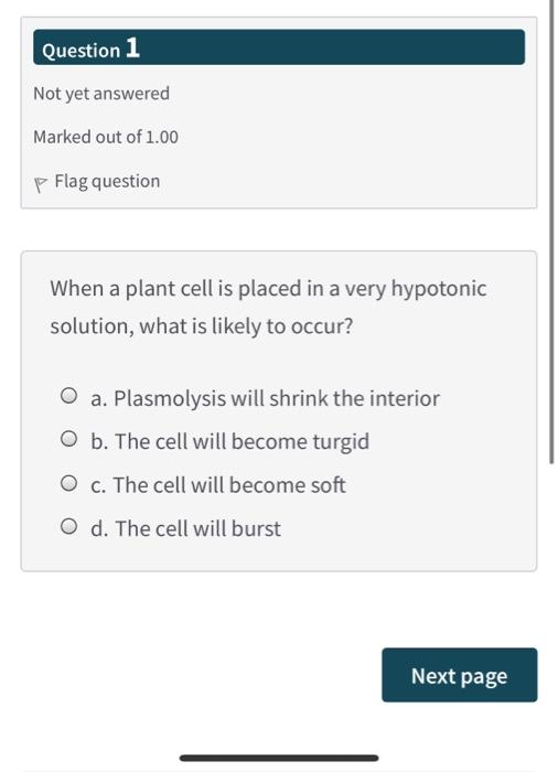 Plant cells are enclosed by rigid cell walls. A cell placed in a hypotonic solution will swell up or gain water, and it can possibly rupture if the excess water inside the cell is not removed. Tapwater and pure water are hypotonic. Biology q&a library what prevents plant cells from bursting when they are placed in hypotonic surroundings? The exchange of water molecules in and out of the cell would be equal.